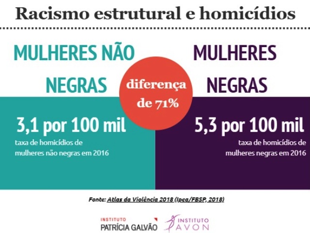 Ainda mais alarmante, dados do Atlas da Violência 2018, apontam o crescimento do feminicídio no Brasil, na qual 4.936 mulheres foram mortas, em 2017, o maior número registrado desde 2007, sendo 66% delas negras.