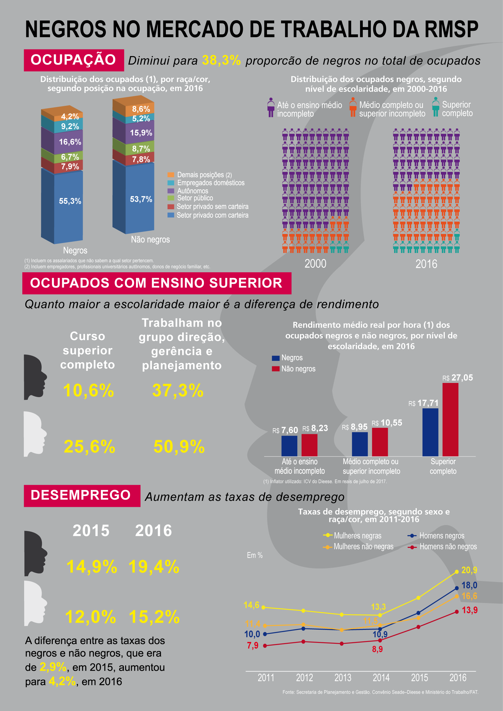 Vivemos novos tempos, onde não há mais espaço para a segregação seja ela de raça, gênero ou qualquer fator excludente. Embora 54% da população brasileira seja formada por negros, ainda somos confrontados por um racismo velado, que se nutre da desigualdade, e por quê não? da alienação dos fatos. Vamos a eles: